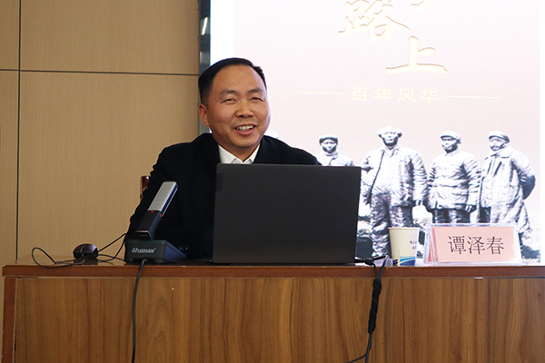 谭泽春的辅导报告以《深入学习贯彻习近平新时代中国特色社会主义思想》为题,从习近平新时代中国特色社会主义思想的时代背景、主要内容、精神实质和实践要求四个方面,深入系统讲解了习近平新时代中国特色社会主义思想。