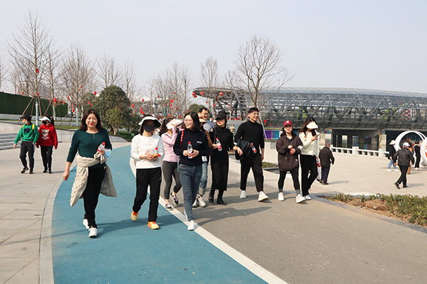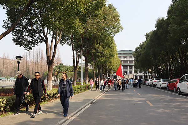 本网讯(记者 筱梦)3月2日,我院举办主题为“魅力女性,快乐巾帼”庆“三八”迎春健康行活动。此次活动起点在我院城中校区文化广场,途经新南门、郢都路、曲江路,抵达中央公园,活动行程约2.8公里。来自全院13个工会小组的教职工参加活动。院长王文凯、党委书记朱继平,副院长尹家经、康建虎、孙细望,党委副书记于永伟,院长助理曹骥等领导兴致盎然的参与了健步走活动。活动充分展现了我院女教职工健康向上、积极进取的巾帼风采,大家在轻松愉悦的氛围中舒展身心、亲近自然、加强交流、增进友谊。