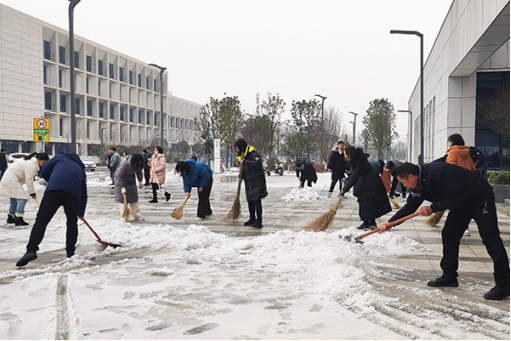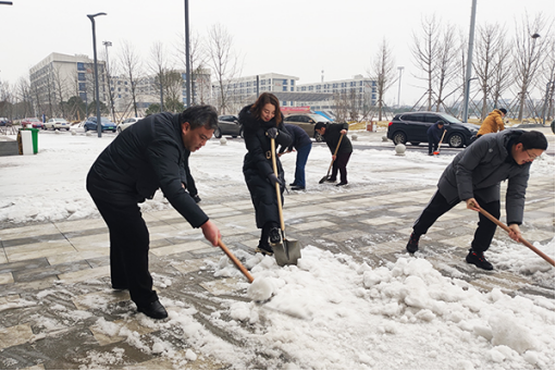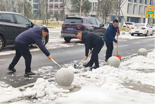 本网讯 近日,受寒潮影响,荆州市大范围雨雪冰冻天气持续。开学在即,为避免因路面结冰给师生返校带来安全隐患,2月26日,学院组织在校教职员工积极开展铲雪除冰行动,为校园筑牢温暖防线。上午8点30分,学院院长李兴祥、党委书记颜建洲等院领导带领教职工来到图书馆门口,积极投入到进出口要道的铲雪除冰行动中。大家挥动铁锹、笤帚等劳动工具,以饱满的热情和十足的干劲战严寒、斗冰雪,为即将返校的学生开辟出一条安全的“暖心路”,确保新学期井然有序开学,迎接着每一名学生平安归来。(图文由党委宣传部提供)
