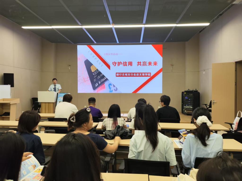 为进一步提升本校学生的信用意识和金融素养,筑牢校园金融安全防线,2025年6月12日,计划财务处联合中国建设银行古城支行,在图书馆103报告厅成功举办了主题为“守护信用·共赢未来”的专题公益讲座。