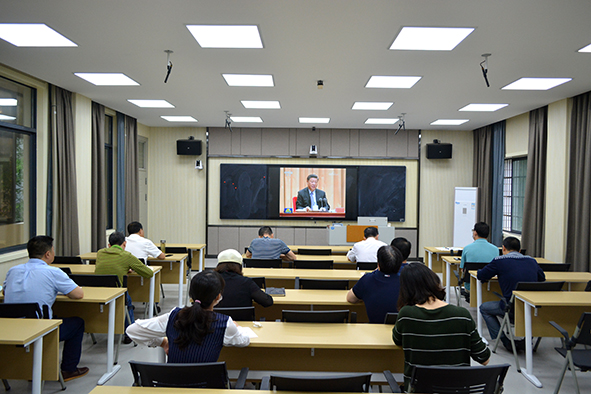 本网讯6月23日上午,党委书记朱继平主持召开党委理论学习中心组6月份集中学习会,认真学习贯彻习近平总书记在“不忘初心 牢记使命”主题教育总结大会上、在第十三届全国人民代表大会第一次会议上、参加十三届全国人大三次会议湖北代表团审议时的重要讲话精神。会议还学习了2020年政府工作报告、中共中央办公厅关于印发《党委(党组)落实全面从严治党主体责任规定》的通知、《中共中央 国务院关于新时代加快完善社会主义市场经济体制的意见》《湖北代表团专题学习习近平总书记重要讲话精神 打造疾控体系改革和公卫体系建设的湖北样板》等内容。(记者 吴秀丽 摄影报道)
