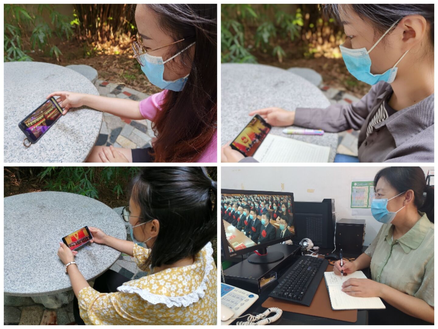 我系教师郭艳凤、胡彩云、孙晗雪、代三妹观看直播