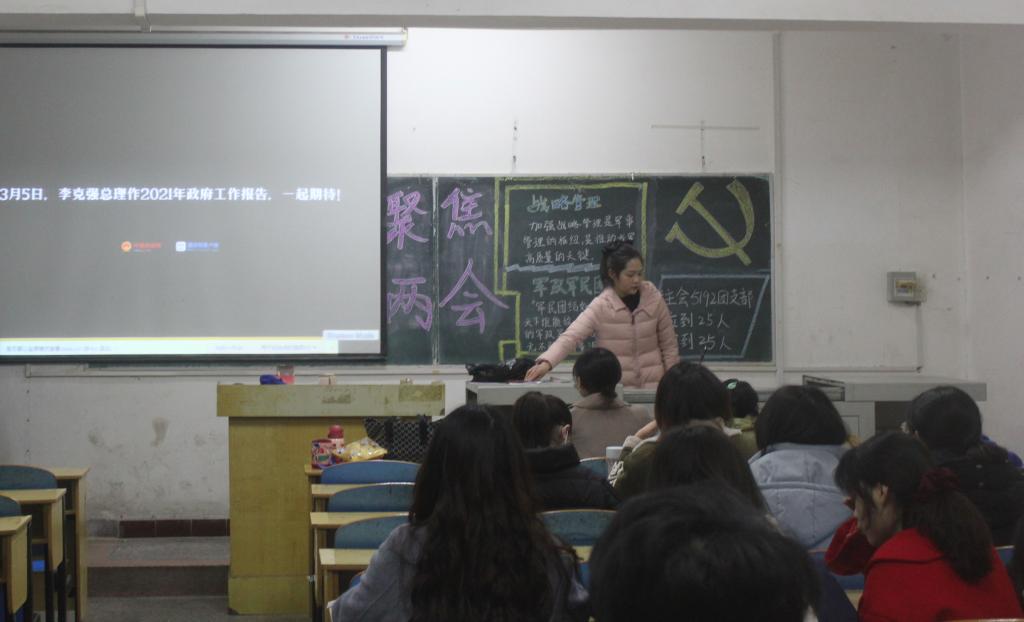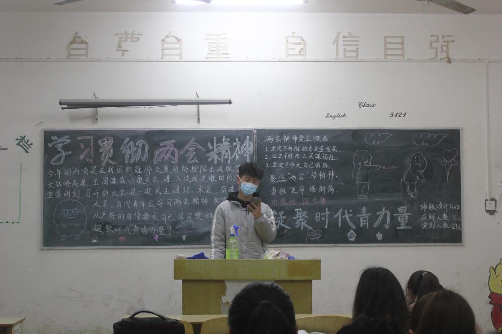各班团支书鼓励同学们利用课余时间关注时政热点,引导各青年密切关注两会动态,畅谈心得体会。同时也要扎实专业理论知识,增强自身责任感,肩负起新时代青年学生的使命。