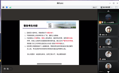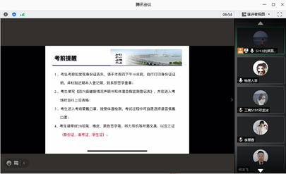 会议首先强调本次四六级考试的时间安排,提醒考生一定要凭证入场,不要迟到,在上午9:00后、下午15:00后迟到考生禁止入场。其次强调考前的相关准备工作,带好三证(身份证、准考证、学生证)、健康声明书以及所需的文具;同时考生进入考场需佩戴口罩,接收体温检测。最后,在考试纪律方面,会议强调,本次考试无故旷考者无法报考下次(12月份)考试。