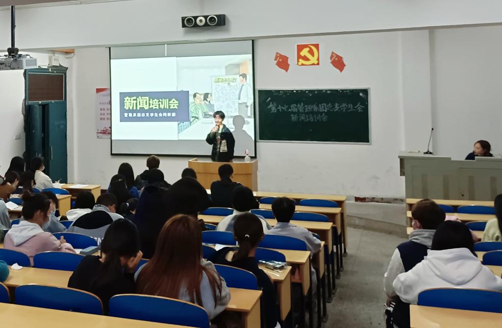 本网讯(通讯员 夏欣 杨婷)10月17日晚上19:00,为了更好地让干事们了解并写好新闻,掌握怎样写好新闻稿的技巧以及要求,培养干事们的新闻敏感度,提高干事们的新闻写作能力,我系学生会全体成员在城中一教414参与了“第十七届管理系团总支学生会新闻培训会。”