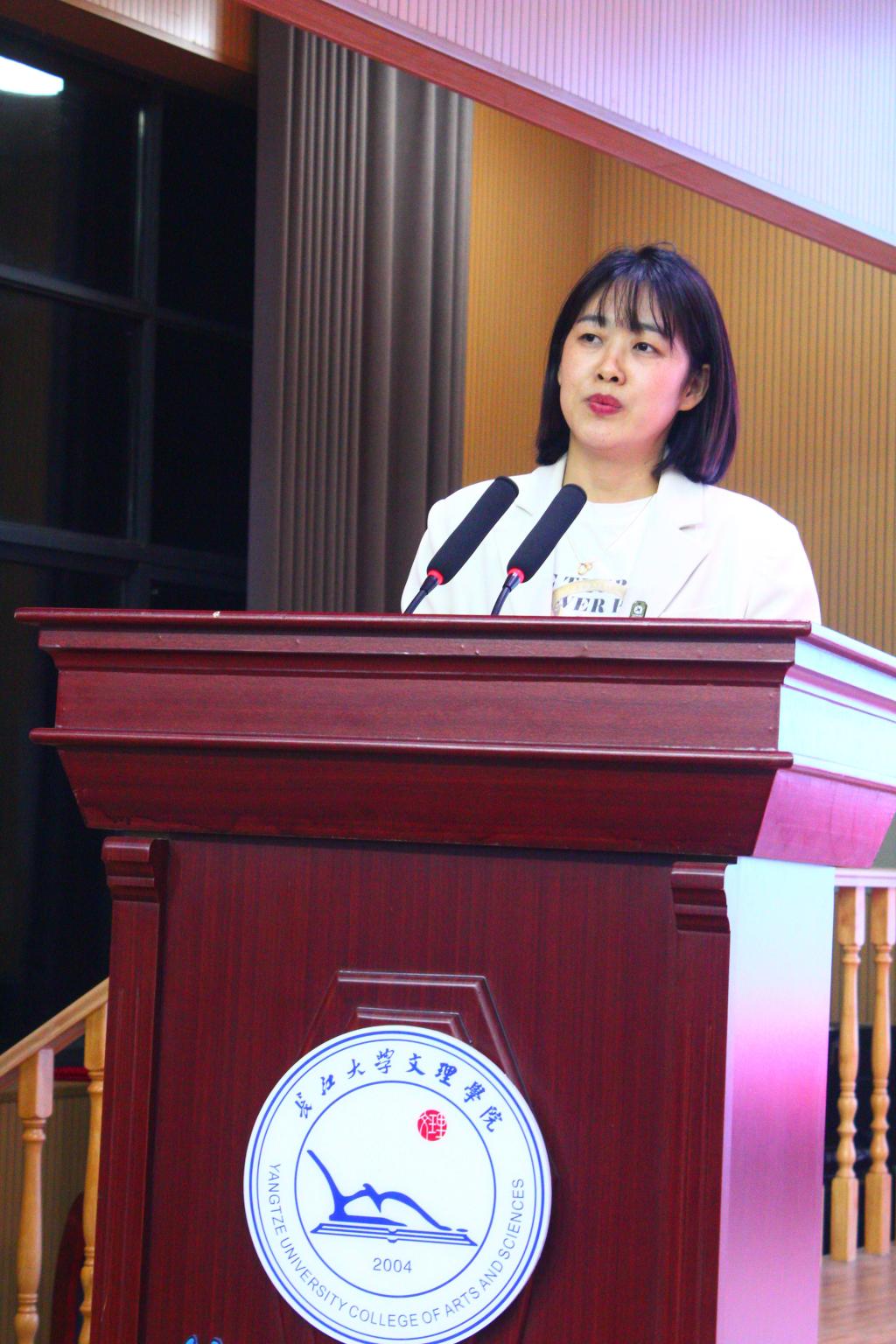 大会开始,首先公布了十七届学生会优秀人员名单,肯定了在过去一年里学生会各人员的工作成果,也给新成员起了榜样作用。接着由十七届学生会副书记周夏盈向在场人员汇报了过去一年学生会的工作。她从“完善内部机制,促进高效发展”“丰富文化建设,打造特设活动”“敢于迎接挑战,争做时代先锋”三个方面展现了这一年学生会丰富多彩,朝气蓬勃的面貌。紧接着,由学生会各领导向十七届团总支学生会颁发聘书,以感谢他们在过去一年的辛勤付出。