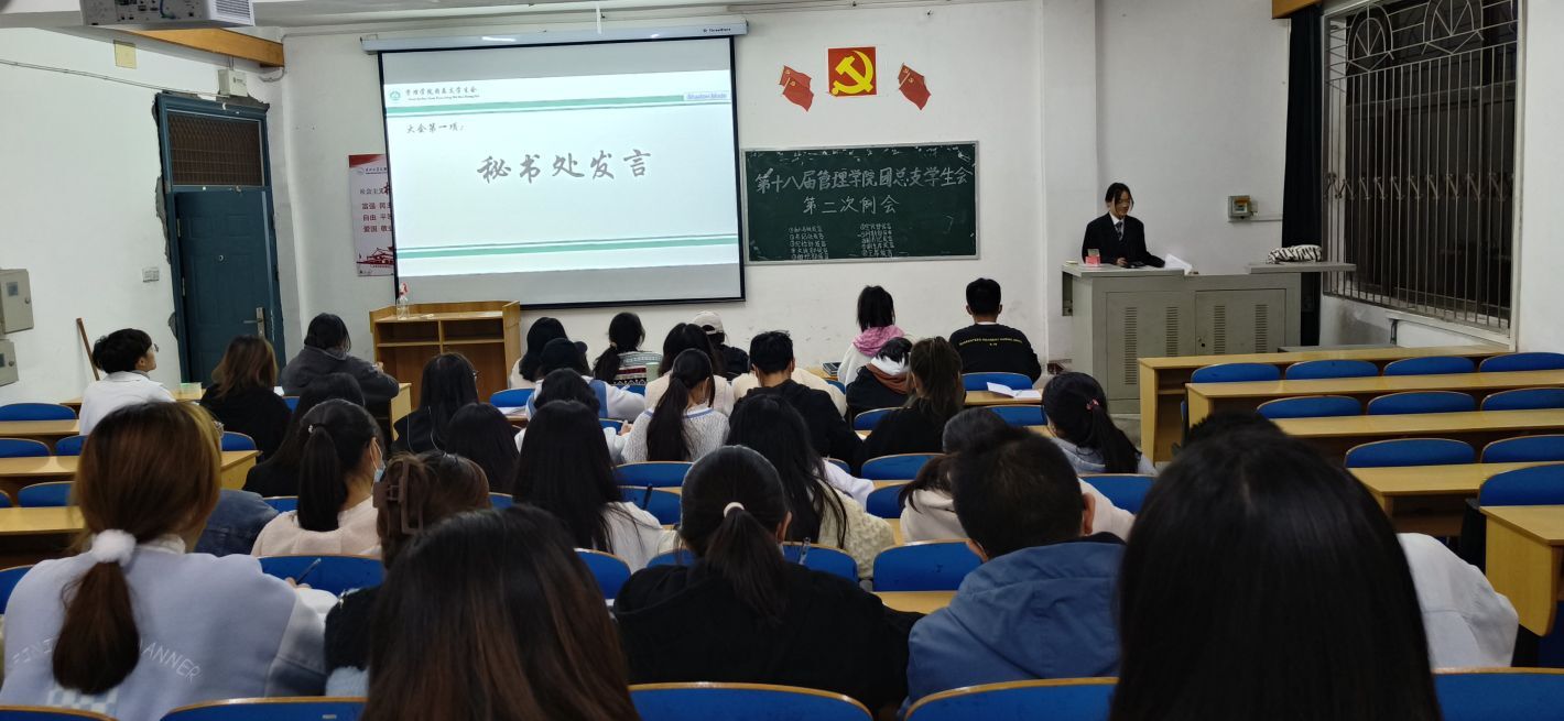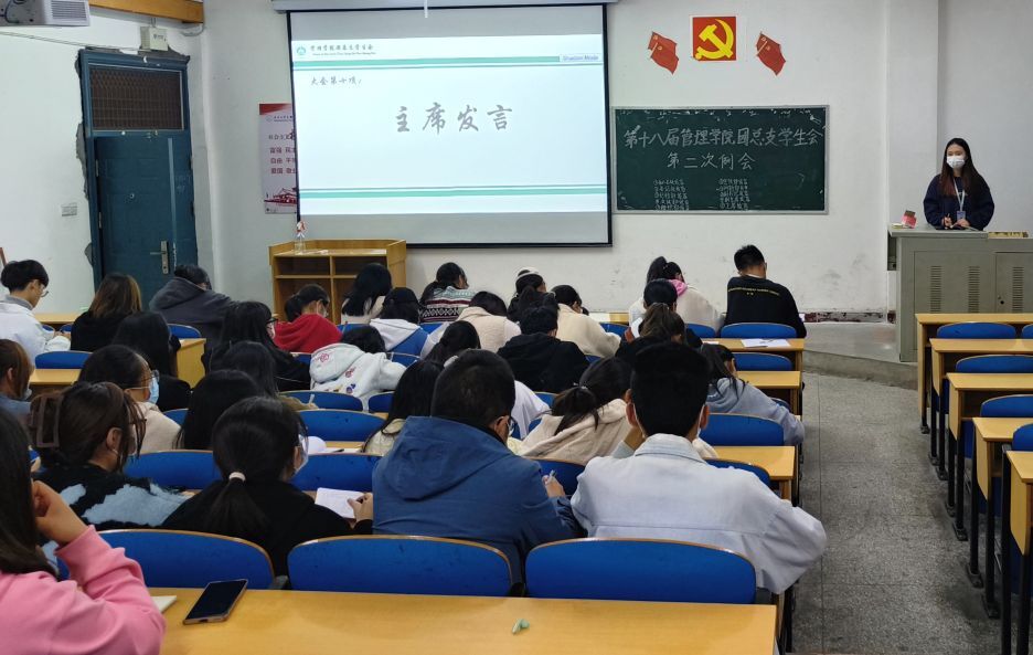 本次会议由秘书处廖楚楚主持,首先,各部门的部长依次上台介绍部员,并对前几周的工作进行了总结,指出了工作中需要改进的问题,随后又讲述了接下来要开展的活动,给予了部员希望与鼓励。其中,各部门部长多次号召部员们积极配合工作,同时平衡好学习和工作。其次,副书记刘洁上台发言,总结了过去的工作,并给予了一定的肯定,同时也指出了工作中所存在的问题,给出了改进的建议。最后,副主席和主席依次上台发言,副主席李嘉伟总结了以往的工作并向大家讲述了接下来的工作,并给予了鼓励与肯定。主席周铃子则强调了团队的凝聚力和信念感,希望各部门之间增加团队意识,从而打造出一支团结的学生干部队伍。