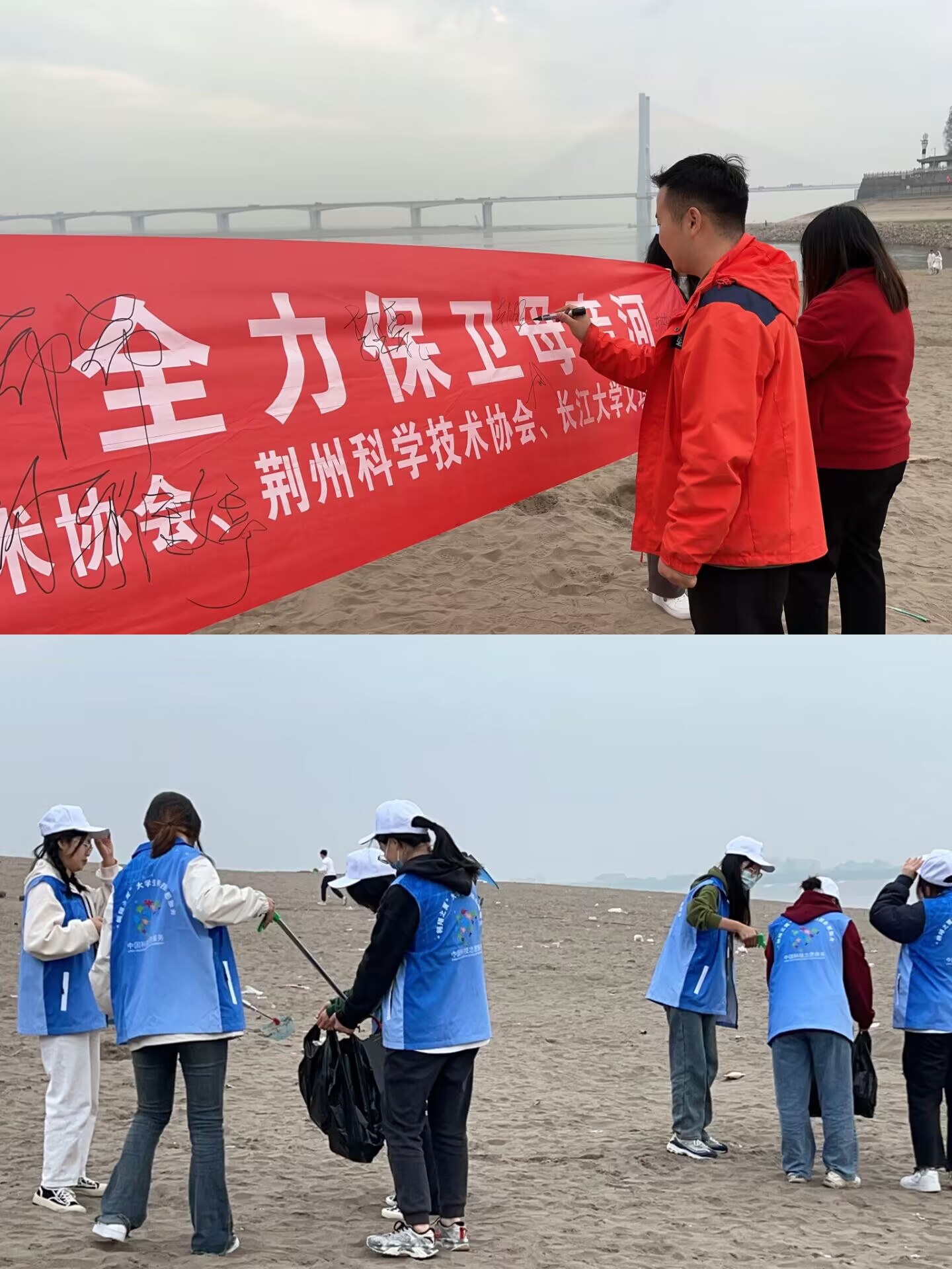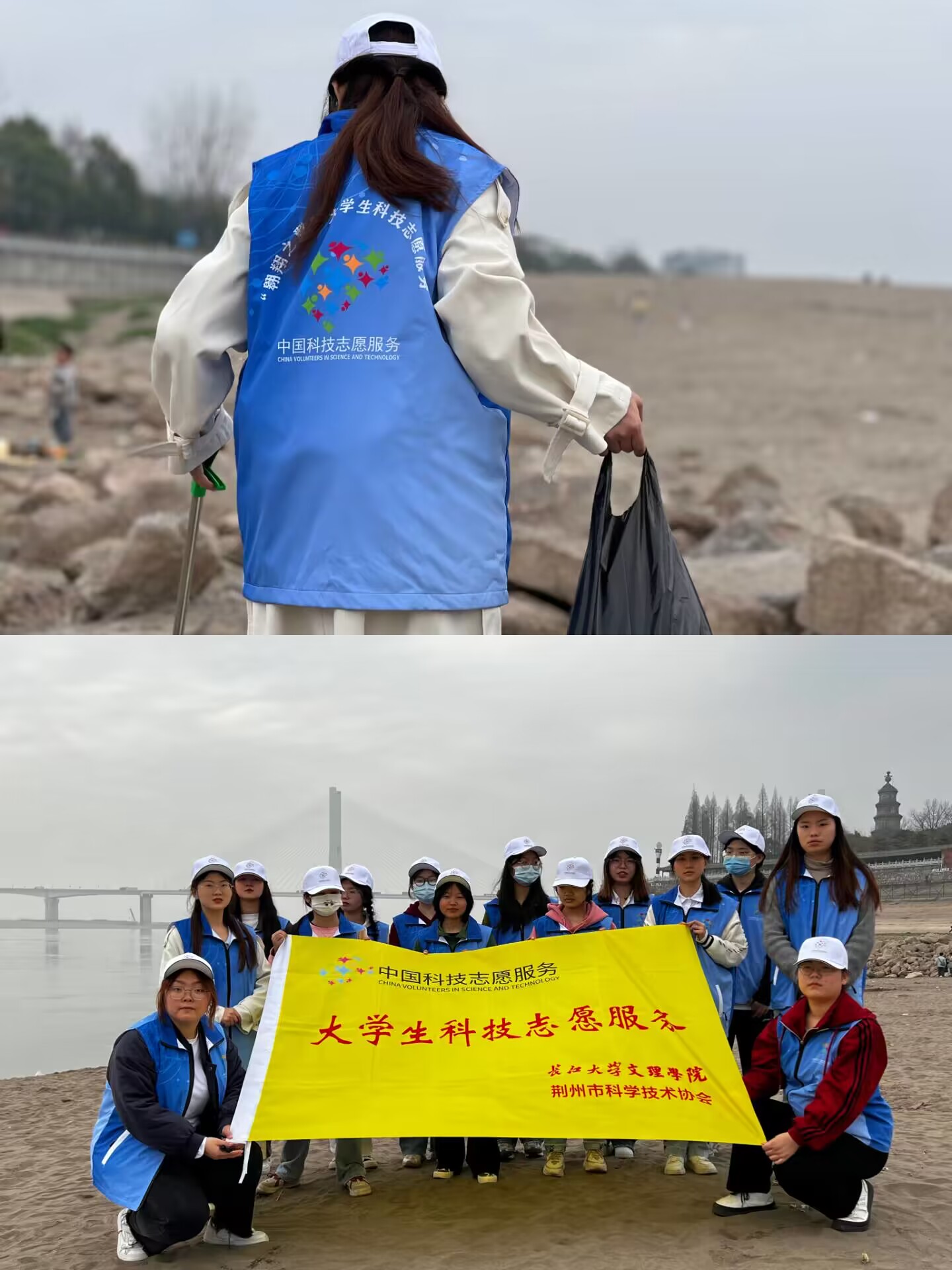 沿着长江一线,身穿蓝马甲,手拿垃圾夹和黑色垃圾袋,将捡到的塑料瓶、烟头、零食袋子等垃圾分为装入不同的垃圾袋。两人一组互相配合,提高了垃圾分拣的效率。志愿者们不怕脏、不怕累,不放过任何一个隐蔽的角落,耐心的细细捡拾。志愿者周铃子感慨到“作为荆州本地人、一名大学生,长江环境保护,应有我的一份力量,这是责任更是义务,今后我会多来江边看看,拾拾垃圾,同时见证母亲河在我们努力下的变化。”