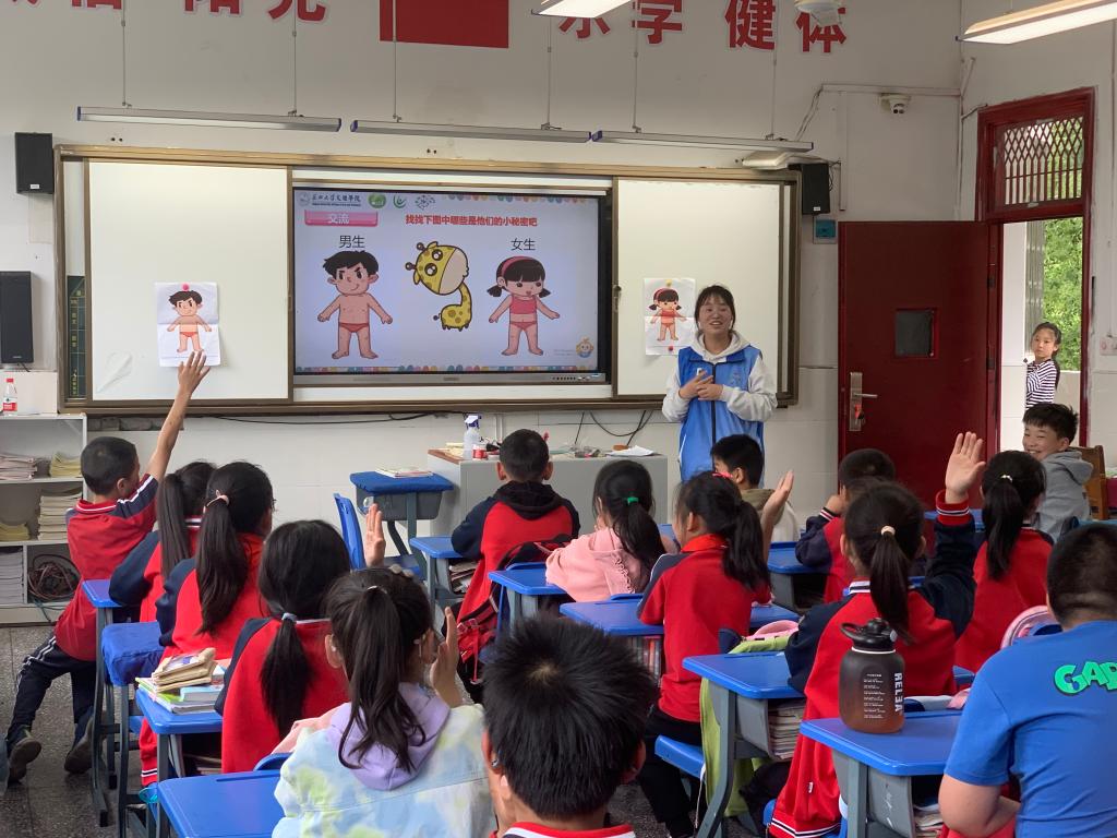 本网讯(通讯员 李颖)2023年5月11日下午两点,志愿者们于川店小学继续开始了自己的科普小课堂,分别围绕科学家精神、科学小实验、防溺水、保护身体的小秘密等四个主题展开讲解,并在讲解过程中积极与小朋友们进行互动,课堂气氛火热朝天、有条不紊。