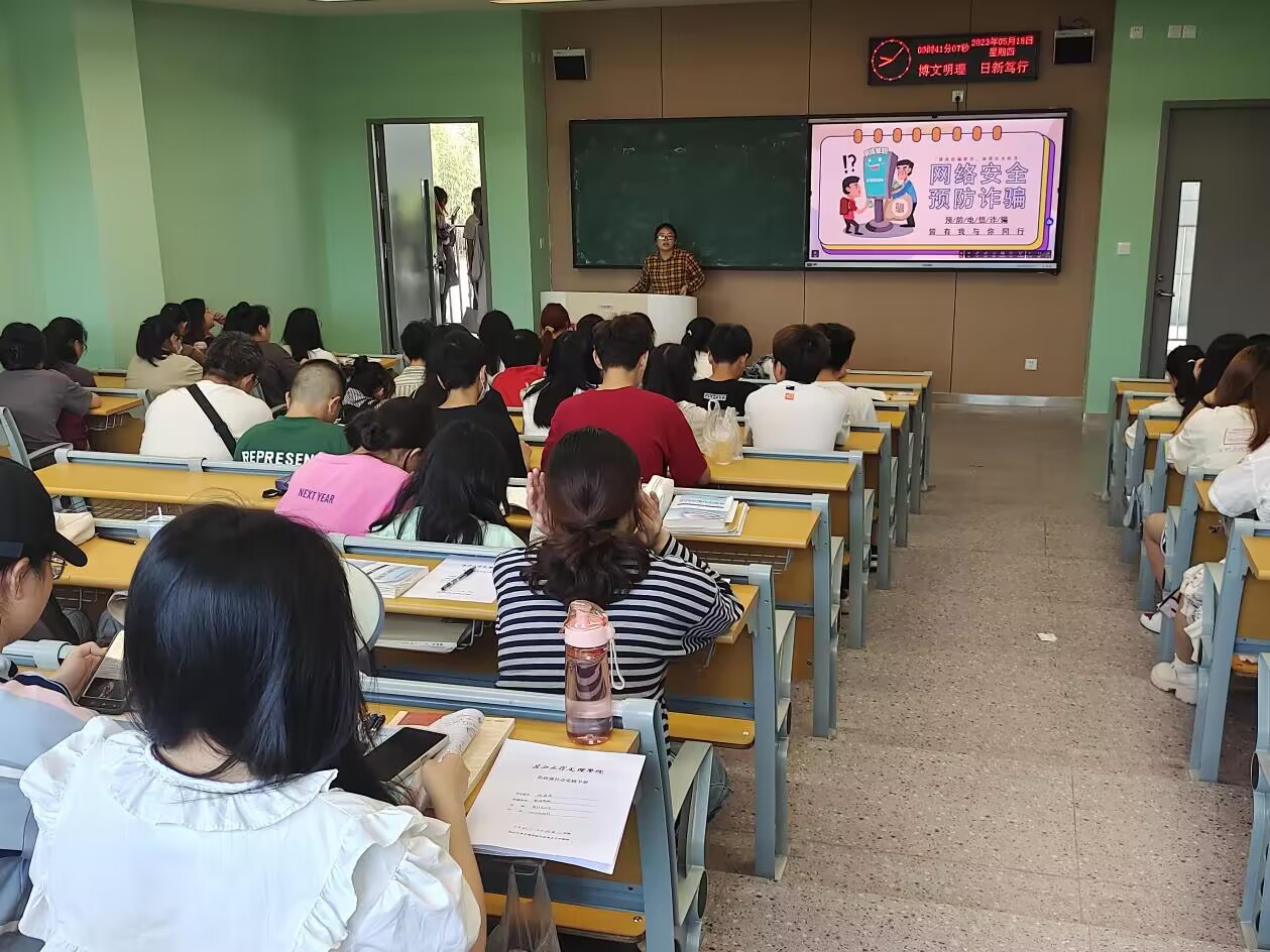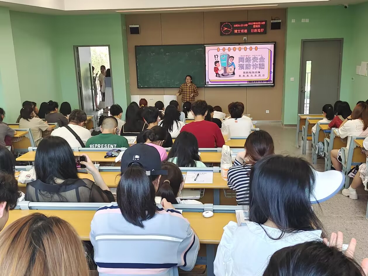 班会上,辅导员老师们围绕在校大学生的人身安全、财物安全、消防安全和防诈骗、防传销、防“套路贷”等方面开展。结合大学生群体特点,重点介绍了刷单返利、“杀猪盘”、冒充电商物流客服、熟人、领导、“公检法”,虚假投资理财、虚假购物、非法校园贷和网络游戏虚假交易等典型电信网络诈骗方式。告诫同学们要牢固树立安全意识,加强安全知识学习,不断提高自我保护意识和安全防范技能,共同构建平安和谐校园,并用生动的事例、简明的道理和朴实的语言为同学们上了精彩的“安全一课”。