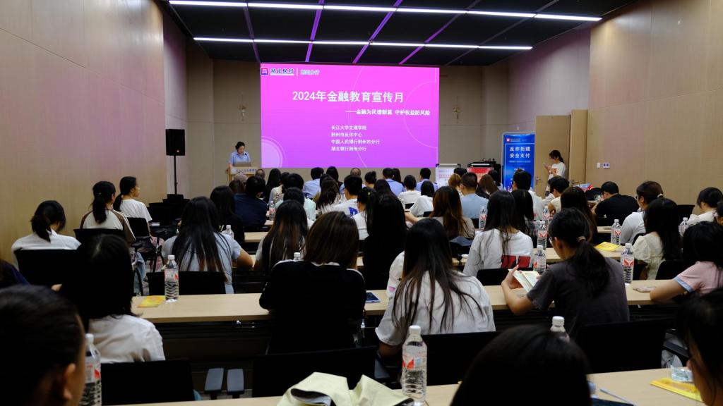 讲座中,荆州市公安局民警首先指出电信网络诈骗的严峻形势,强调了提高防范意识的重要性,并详细解读了诈骗类型及防范技巧。随后,湖北银行荆州分行代表以“反诈拒赌、安全支付”为主题,介绍了反洗钱、存款保险及假币防范等知识,并通过有奖问答巩固了学生对金融诈骗的认识。