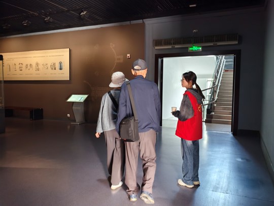 荆州博物馆主要包括五大夫遂展馆、湿尸和棺椁馆、主题展览等,志愿者在进行志愿服务之前,了解各个场馆的具体方位,在有游客提出询问时,主动带领游客前往相应的区域。同时,有志愿者提到游客向他们询问“郢”的读音,志愿者积极作出回复,并且建议在以后的博物馆活动中,可以提前了解相关展品的读音以及方位。