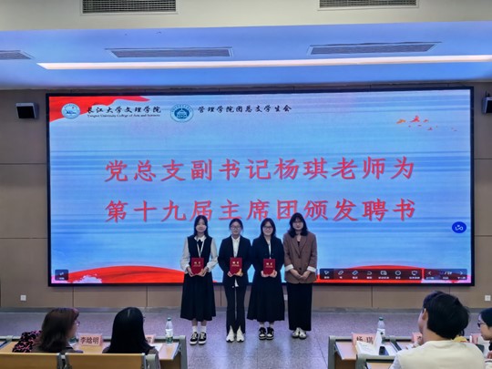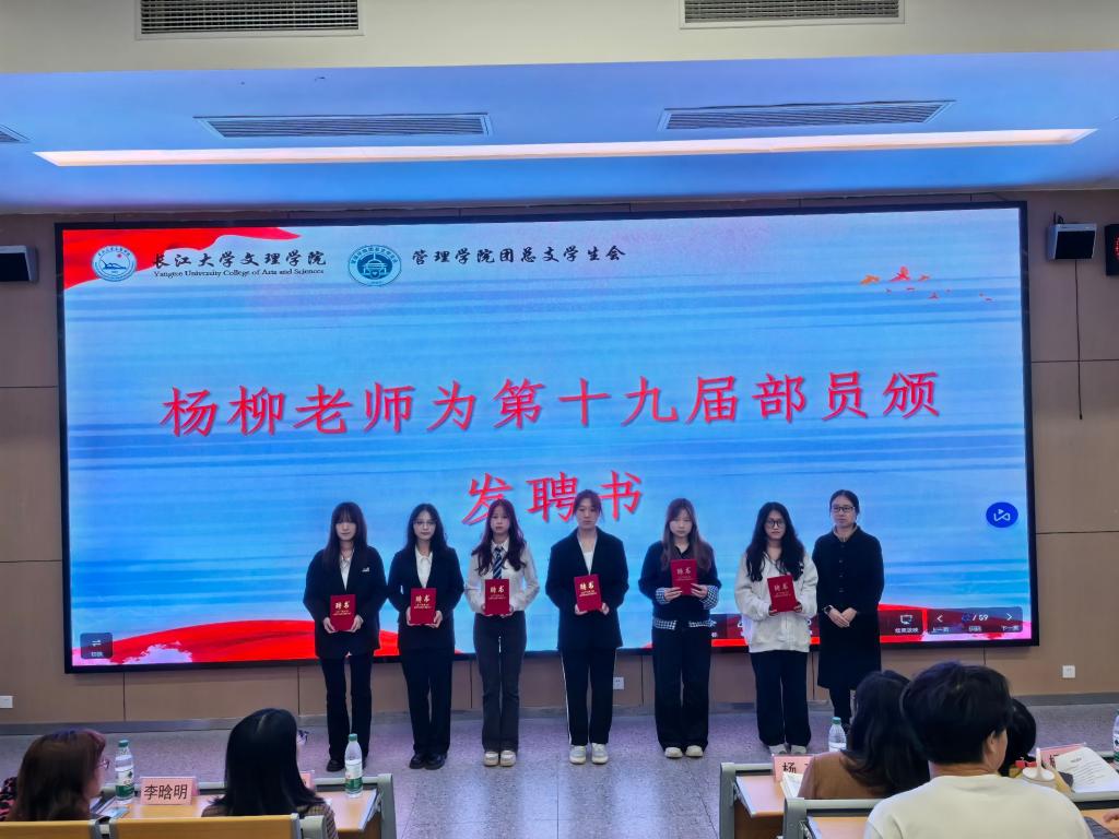 大会伊始,由系部领导、老师为优秀学生干部颁奖和发放聘书,高度赞扬了她们出色的工作能力和无私的奉献精神。第十九届管理学院团总支学生会副书记杨宇航发言如同一部精彩的纪录片,回首了那些难忘的时刻,总结了学生会在学术、文体和社会实践等方面所取得的显著成绩。