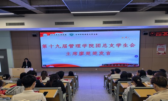 第十九届管理学院团总支学生会主席廖楚楚的发言,她希望新一届的成员能够继续发扬优良传统,不断创新。随着第十九、二十届管理学院团总支学生会授牌交接仪式的圆满完成,标志着新一届学生会成员正式接过了接力棒。第二十届管理学院团总支学生会主席张健以“所有的不完美都是为了未来的完美铺路”为引,表示将不负众望,承担起责任。