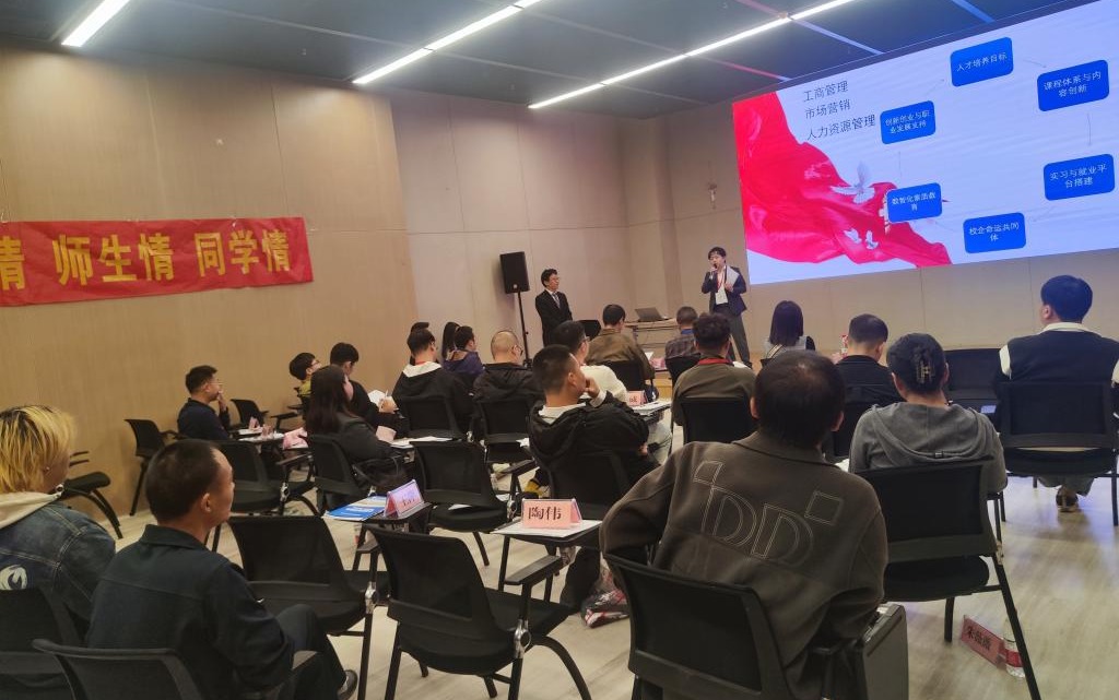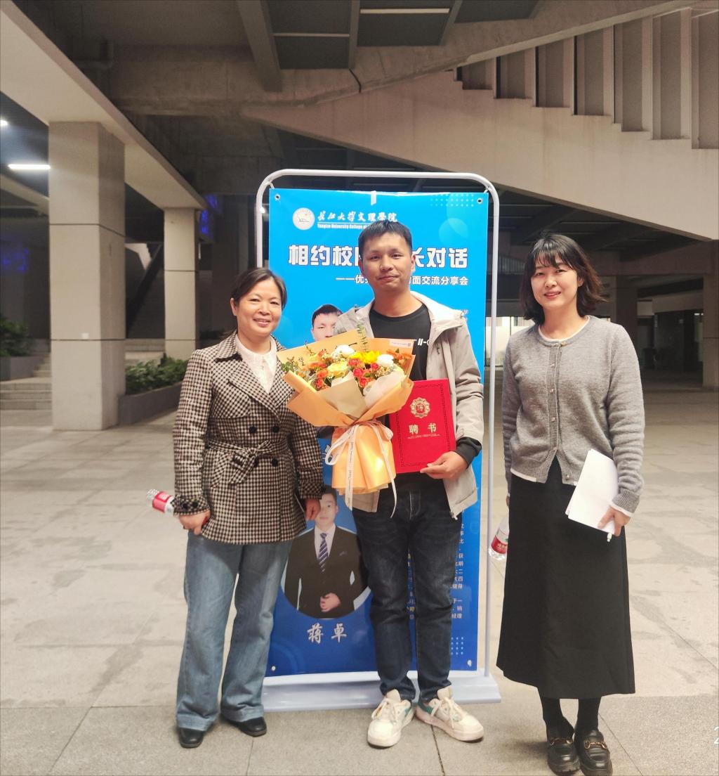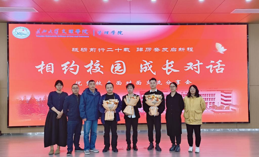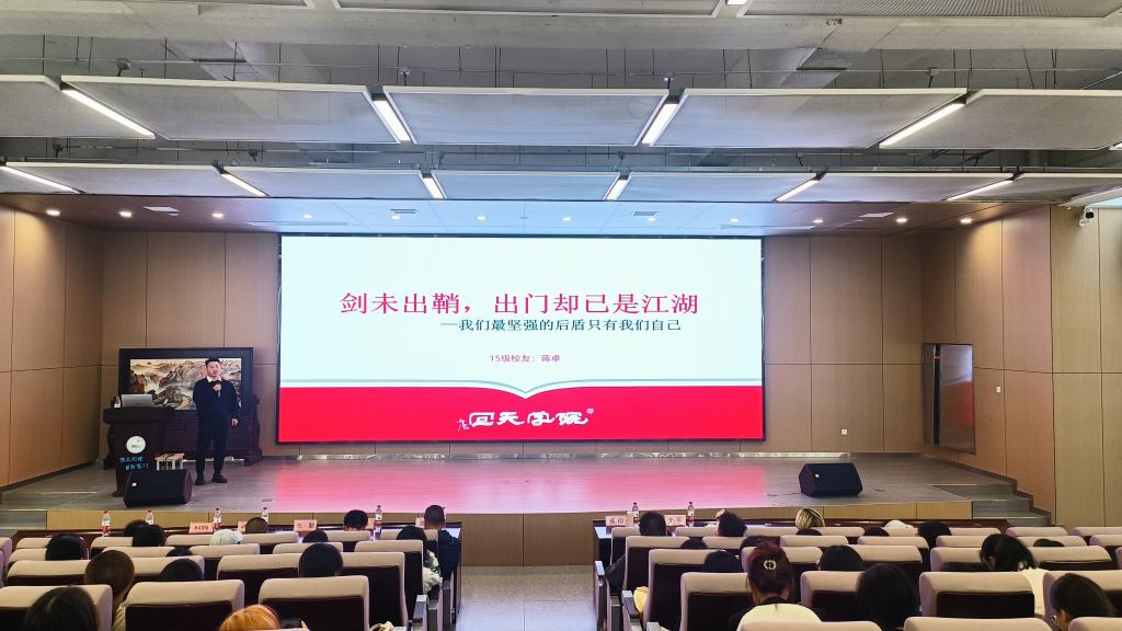 16届校友、深圳市海博工程科技有限公司湖北分公司人事经理何腾围绕“高考结束”“大学毕业就业”分析解说,送同学们三句话激励其寻找未来道路。“在学校一定要打好专业基础,工作时才更有底气”16届校友、湖北澴川国有资本投资运营集团有限公司员工谢文超向会计专业学生分享了专业学习的重要性以及高效考证经验,还因出色经历获管理学院颁发的校外“双师型”教师聘书。现场校友们与学弟学妹们互动交流,气氛热烈融洽。
