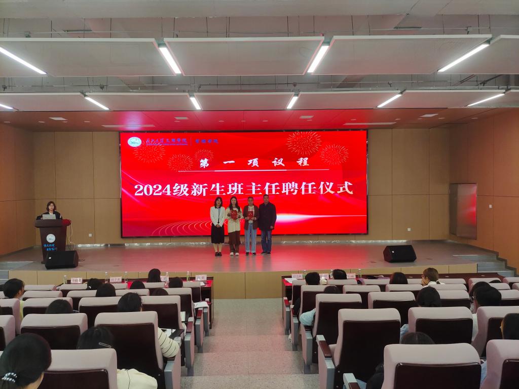 为更好地发挥学院专业教师在学生成长成才中的作用,会议第一阶段聘任2024级新生专业班主任。会上,管理学院院长姚毅、党总支书记胡沿林为2024级新生专业班主任颁发聘书。