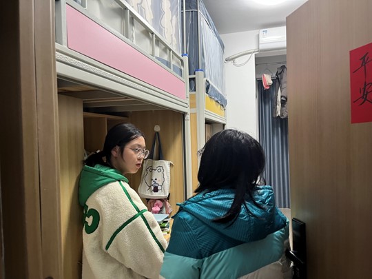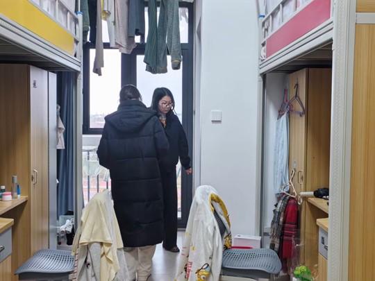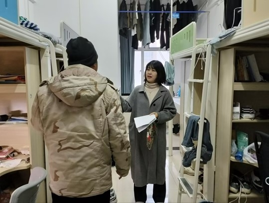 在查寝过程中,学院领导及辅导员们深入学生宿舍,认真细致地检查了每一间宿舍的卫生、用电安全、防火防盗以及学生的住宿情况等方面。他们详细询问了同学们的学习、生活以及心理状态,鼓励大家要保持积极向上的心态,合理安排时间,确保身心健康。同时,老师们也耐心指导同学们进行物品归类和垃圾清理,确保宿舍环境的整洁与舒适。