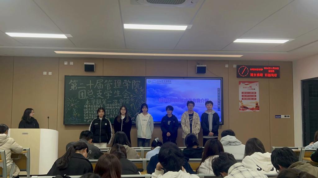 此次例会的成功召开,既是对过往阶段工作的深刻总结与反思,更是对学生会未来发展方向的清晰展望与规划。全体成员积极踊跃地参与其中,畅所欲言地表达自身愿景与期待。在新鲜血液的注入下,学生会必将焕发新的活力,第二十届管理学院团总支学生会也必将在未来的征程中稳步前行,发展前景无限光明!