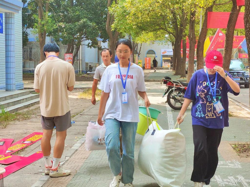 管理学院搬运行李的志愿者们整装待发,面带微笑,热情的接待每一位新生。他们用自己的热情,将每位新生的行李“洗劫一空”。青春是他们的代名词,汗水是他们认真的痕迹。迎新志愿者们努力的搬运行李让新生更安心的走向这暂时陌生的校园。他们尽力去帮助每一位萌新,让他们感受到来自学校的温情。