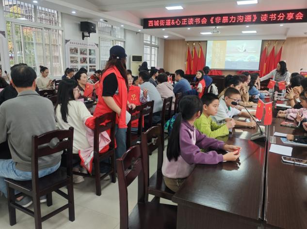 活动现场,志愿者们忙碌的身影构成了一幅动人的画卷。他们用心布置场地,摆放桌椅,营造出一种舒适且温馨的阅读氛围。那一本本《非暴力沟通》的书籍整齐地摆放在桌上,仿佛在无声地传递着沟通的智慧与力量。