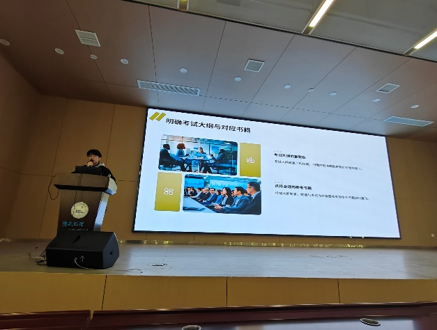 本科毕业于长大的王宇超带来他的考试复习策略与心理调试。他首先强调了考试大纲和资料准备的重要性,然后讲述了他是如何规划复习时间的,接着详细的说明了各科的复习方法与顺序,最后告知了我们考试难度和考后如何调试心理压力。