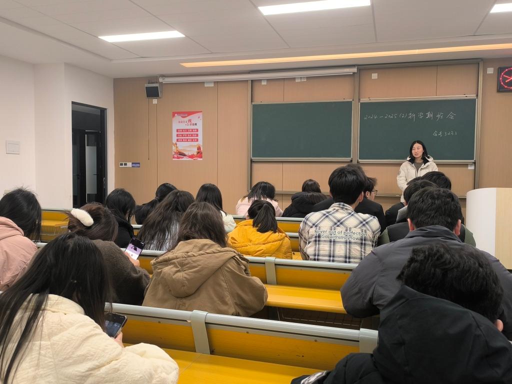 本网讯(通讯员:杨琪)随着新学期的钟声敲响,2025年春季学期如约而至,管理学院各班于开学首日召开了别开生面的开学第一课主题班会。此次班会旨在明确新学期学习目标,激发同学们的学习热情,同时加强班级凝聚力,为同学们的新学期之旅奠定坚实基础。