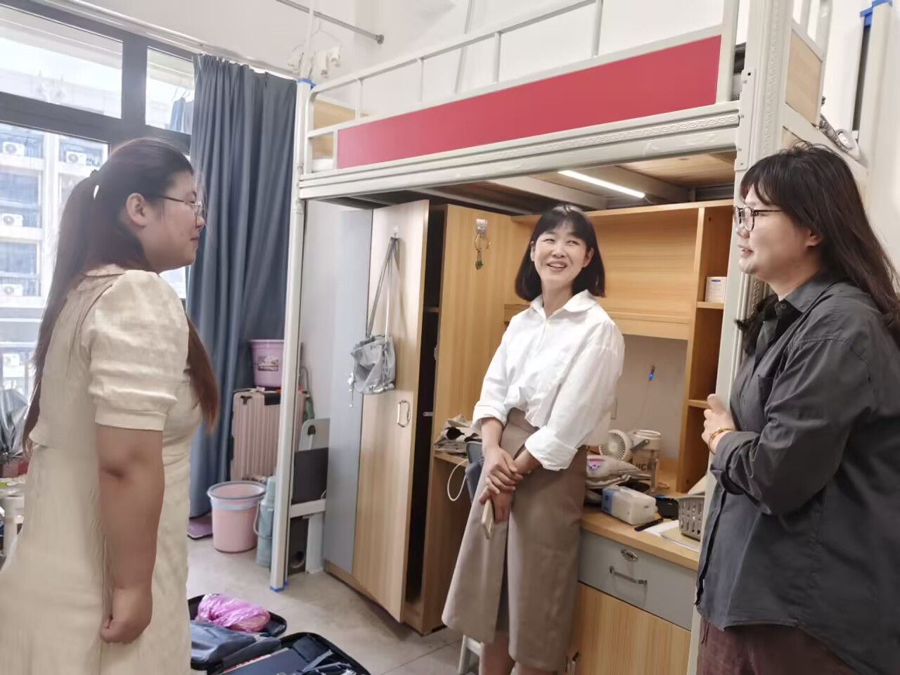 走访中,学院领导老师们与毕业生们亲切交谈,详细了解了同学们的就业去向、离校准备和未来发展规划,勉励大家在新的征程上勇毅前行。老师们还特别叮嘱毕业生要文明离校,倡导毕业生以行动传递感恩与责任。师生畅叙情谊,宿舍内欢声笑语,温情满满。
