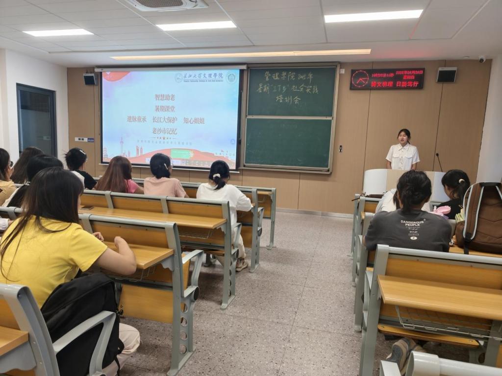 本网讯(通讯员 邓易)2025年6月26日晚,管理学院2025年暑期“三下乡”社会实践第七期培训会在教学楼C-423如期举行。经过前期严格选拔脱颖而出的全体实践队员齐聚一堂,共同参加此次关键性岗前培训。本次培训会由刘文昭同学主持。