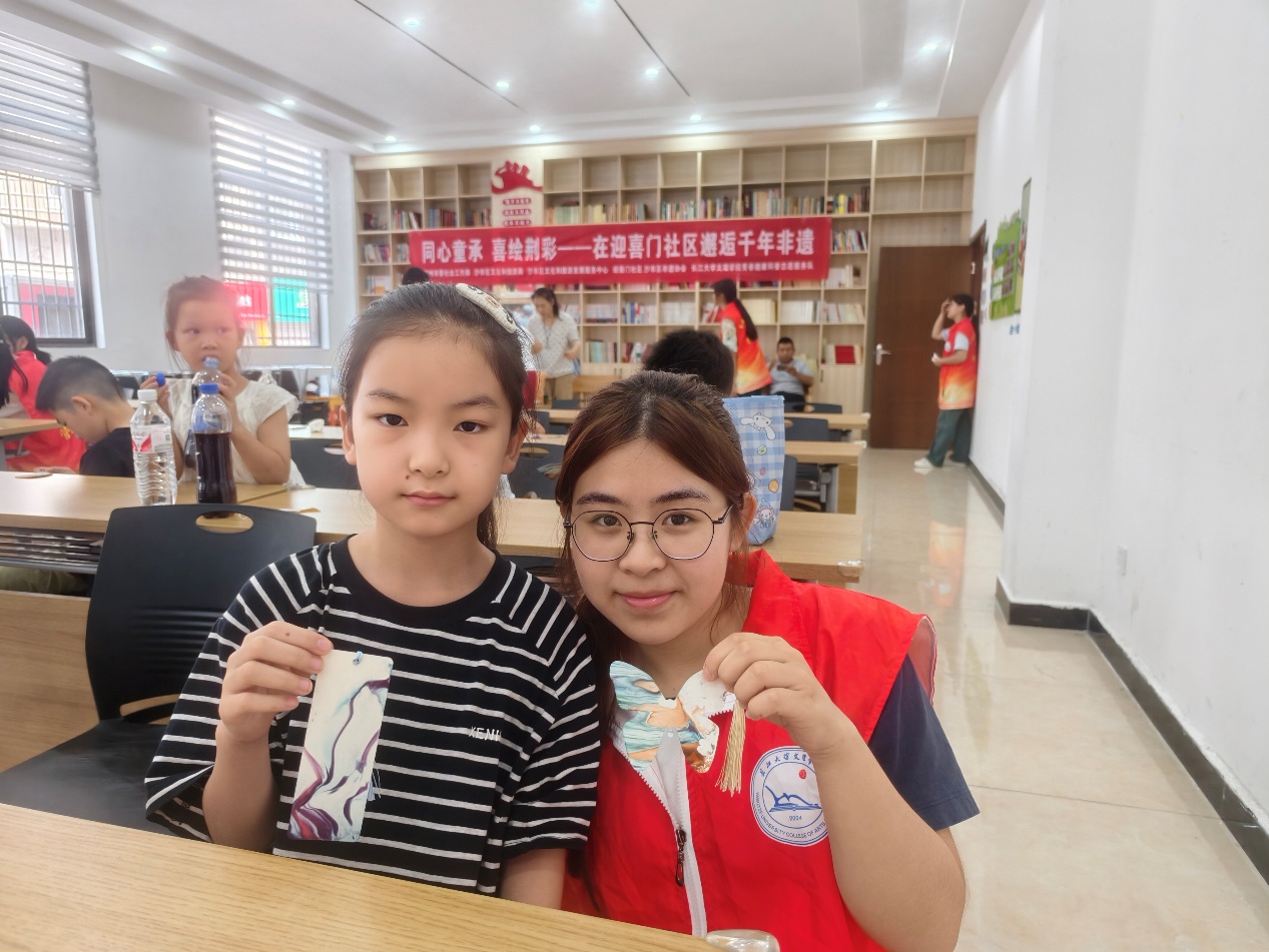 本网讯(通讯员 胡琪琪)2025年7月11日,由荆州市委社会工作部指导,沙市区文化和旅游局、沙市区文化和旅游发展服务中心、迎喜门社区、沙市区非遗协会、yl7703永利集团青春健康科普志愿服务队联合推出的“同心童承,喜绘荆彩”非遗小课堂,在迎喜门社区正式开班。首期课堂特邀沙市区非遗协会印静老师,为孩子们带来染漆体验,管理学院“益老益小”专项服务队的志愿者们全程参与,助力暑期非遗传承序幕活力开启。