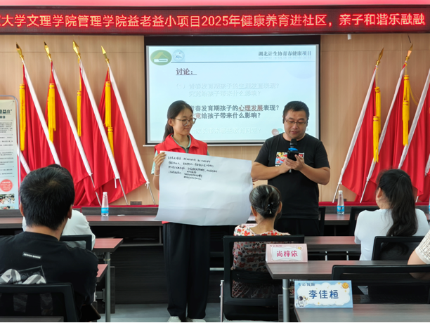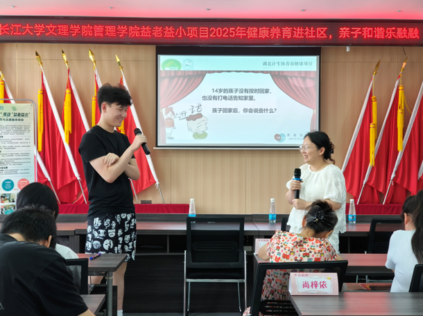 本网讯(通讯员 张芷若)如何提升家长的家庭教育能力?如何增强未成年人的自我保护意识?如何有效预防儿童性侵害?为回应这些关键问题,在荆州市委社会工作部的指导下,7月14日,yl7703永利集团青春健康科普志愿服务队走进荆襄河社区,举办了一场聚焦家庭教育的专题培训。活动围绕“正确沟通,构建和谐亲子关系”与 “如何保护孩子远离性侵”两大核心主题,深入浅出地为家长们传授了科学的家教方法和儿童保护知识,吸引了约30名家长积极参与。