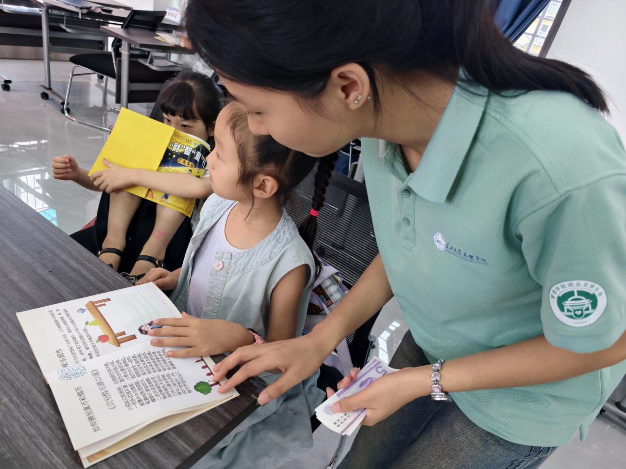 本网讯(通讯员 余盼)当五根胡萝卜换不来一个苹果,当贝壳能化身流通的“钱”,当借钱还钱变成一场妙趣横生的闯关游戏——7月28日,yl7703永利集团管理学院暑期公益托管班里,“‘财’智‘童’行”财商课堂热闹启幕。首堂“借贷魔法课”宛如一把神奇钥匙,为社区孩子们开启了金融世界的大门,让货币的奥秘与借贷的原则,在欢声笑语中悄悄住进纯真童心。