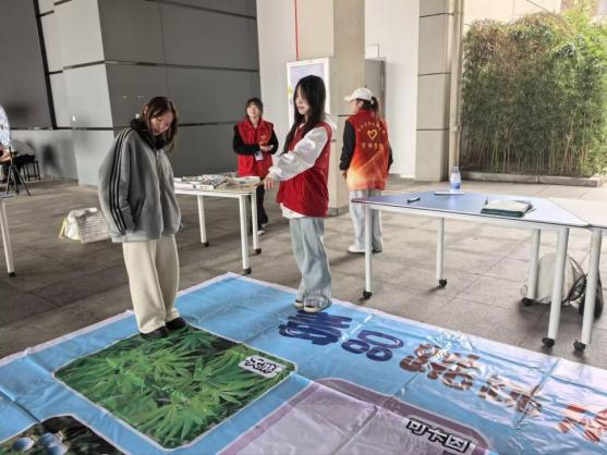 禁毒教育游园会则聚焦防毒拒毒,打造沉浸式学习场景。现场设有禁毒教育专区,通过毒品仿真模型展示、传统毒品与新型毒品对比讲解、禁毒知识连连看、禁毒小卫士拼图、禁毒承诺签名等形式,直观普及毒品危害与防毒技巧。志愿者同步发放宣传手册,引导师生自觉抵制毒品诱惑,筑牢安全防线。