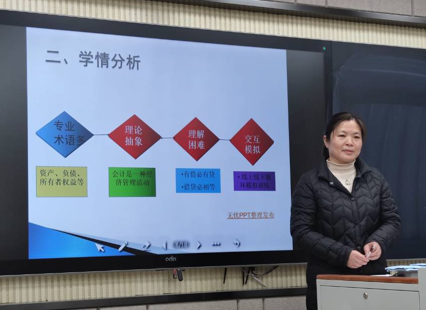 上图:《会计学原理》课程负责人张菊老师作说课演讲