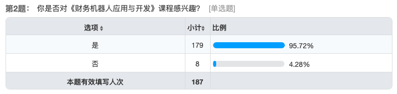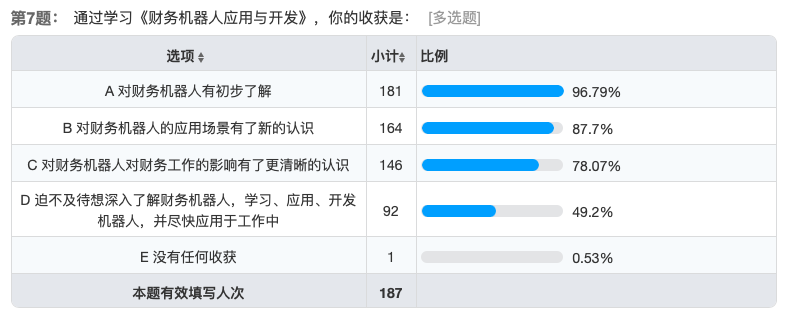 在顺利结课后,管理系还特别针对授课学生进行了在线问卷调查以了解本课程的学习效果,到截止日期共计187人次参与了答题。
