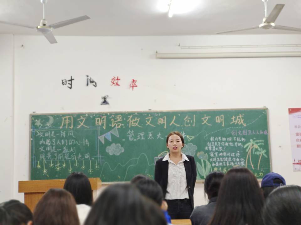 本网讯(通讯员 张蓓)10月20日,为响应荆州市创建全国文明城市活动,构建文明美好校园环境,我系积极开展“用文明语,做文明人,创文明城”主题班会。本次班会旨在提高同学们的文明意识,增强社会责任感。