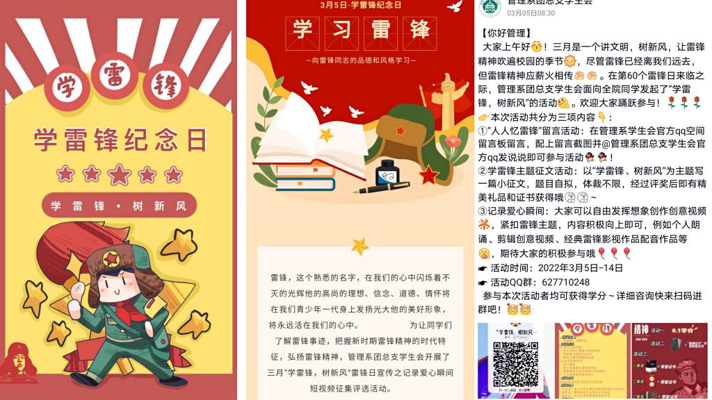 为让学生了解雷锋纪念日的由来,知晓雷锋的生平、名言、光荣事迹,继承和发扬雷锋诚实守信、热心公益、助人为乐、无私奉献的精神,以雷锋为榜样,争做新时代志愿者,倡导校园文明新风,大力弘扬雷锋精神,更好地引导学生了解雷锋事迹,管理系团总支学生会进行了“人人忆雷锋”留言活动、学雷锋主题征文活动以及记录爱心瞬间活动。同学们积极热情参与,良好的宣传了雷锋精神,本次活动不仅加深了同学们的学雷锋意识,歌颂了雷锋全心全意为人民服务的品质,让大家对“雷锋精神”有了新一层的认识,而且为永利集团增添了一道亮丽的风景线。