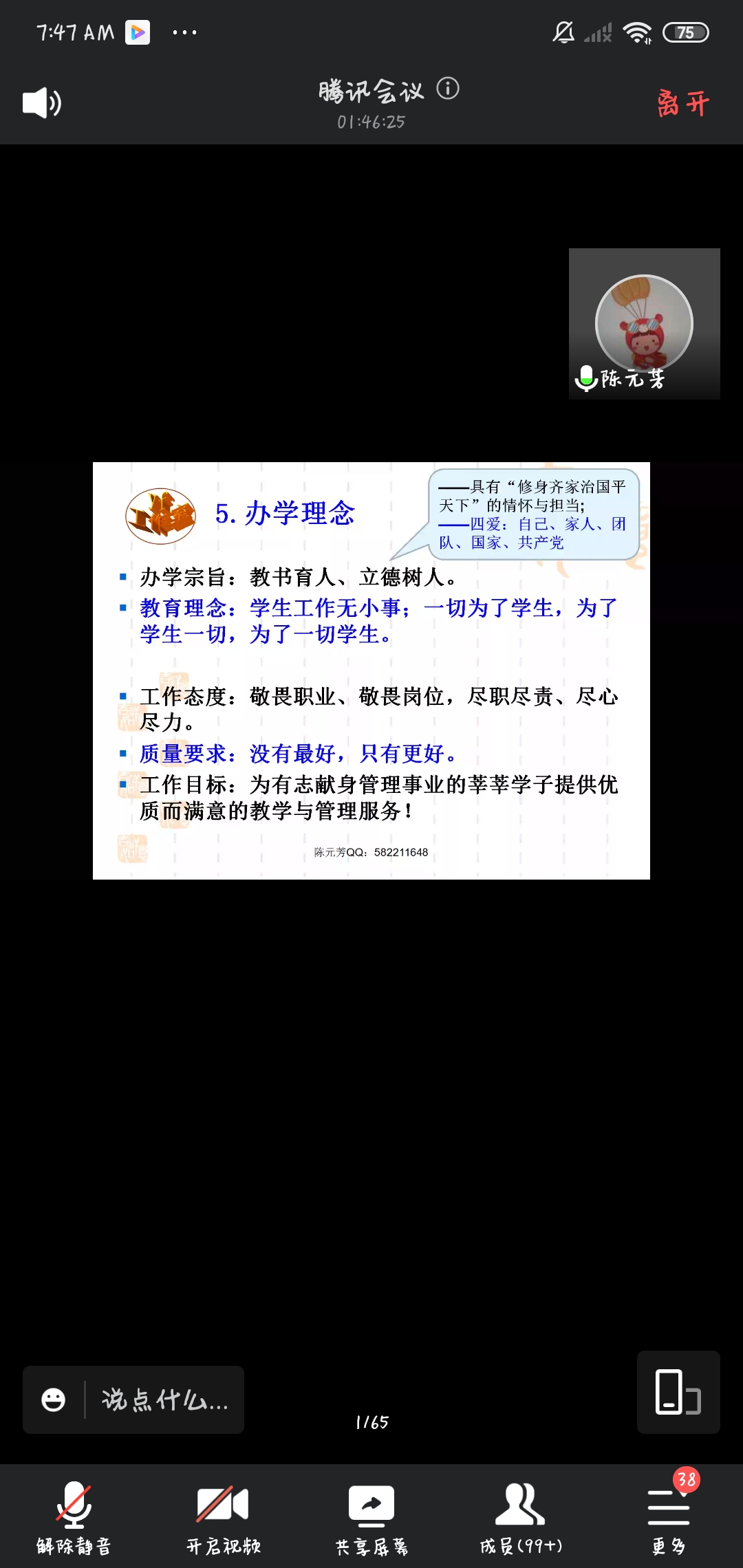 首先各班班主任和辅导员通过线上平台,与家长们进行了进一步的沟通交流,提出对学生未来四年的美好祝愿,家长们仔细聆听,认真记录,最后管理系主任陈元芳从师资力量、专业设置、办学成绩等多方位全方面的介绍管理系,使新生和家长们对系部有了更清楚的认识。