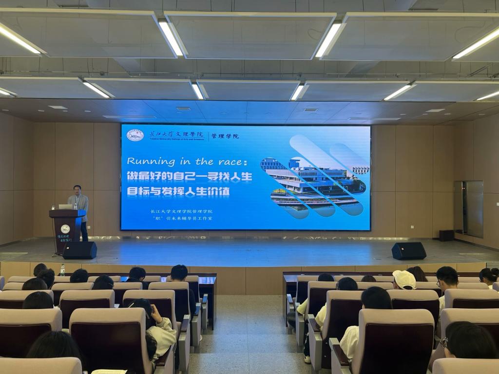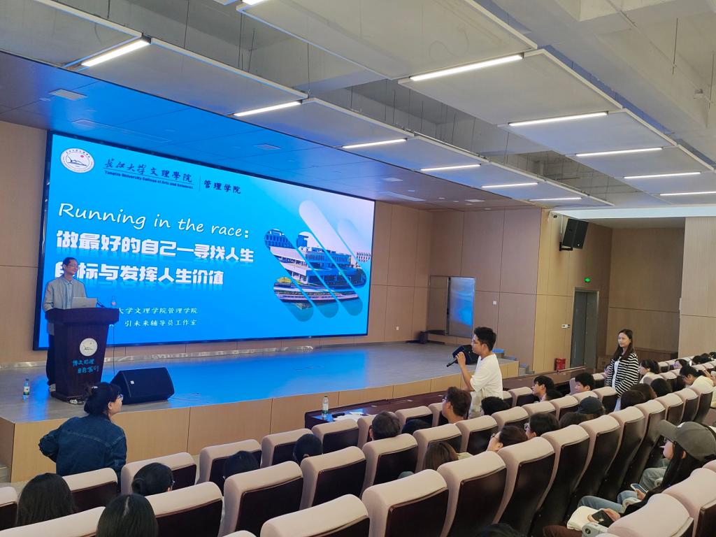 本网讯(通讯员:杨 琪)10月16日下午,yl7703永利集团管理学院优秀校友、美国德州农工(Texas A&M University)经济学硕士刘亮回校作题为“Running in the race:做最好的自己—寻找人生目标与发挥人生价值”的职业生涯规划主题讲座。本次讲座由管理学院和“职”引未来辅导员工作室主办,管理学院教师和2024级、2023级学生200余人参加活动。讲座由管理学院院长姚毅主持。