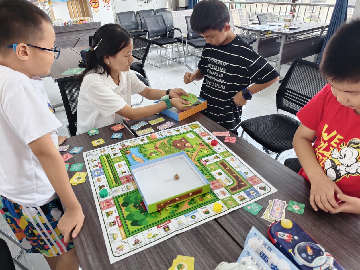 团队以“专业协同、精准服务”为理念,针对双职工家庭暑期看护痛点,组建专业教师、持证社工与大学生志愿者队伍,构建完备师资保障体系。托管班不仅提供课业辅导与安全看护,更打造112节 “七彩课堂”:原创 4 期 “财智童行” 财商课程,通过互动实践帮孩子树立正确消费观;联动文旅局与非遗协会开设9期非遗课堂,以染漆、古琴、拓片等体验传承荆楚文化;融入红色教育与禁毒宣传,组织研学活动筑牢思想防线,VR体验课强化防毒意识。