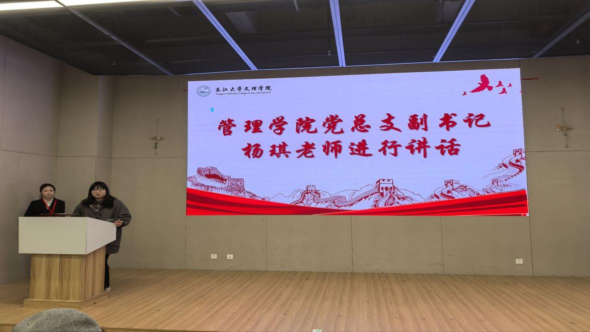 学院党总支副书记杨琪老师总结大会精神,强调践行志愿准则,明确服务方向与重点工作,称与干事并肩同行、倾听意见,鼓励大家以行动践担当、共促团队发展。