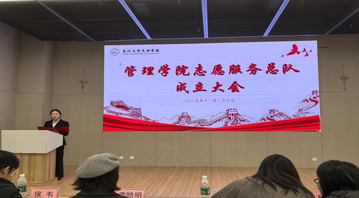 本网讯(通讯员 刘世豪)为凝聚青春力量、传递志愿温情,进一步弘扬“奉献、友爱、互助、进步”的志愿精神,2025年11月26日,管理学院志愿者服务队成立大会在图书馆103隆重举行。各位领导老师以及全体志愿者队员齐聚一堂,共同见证我校志愿服务事业开启崭新篇章。
