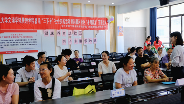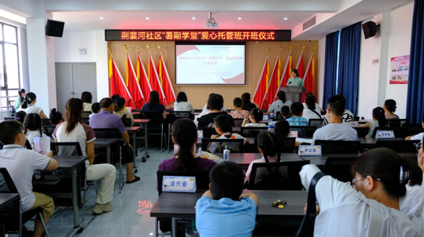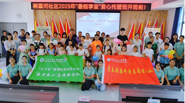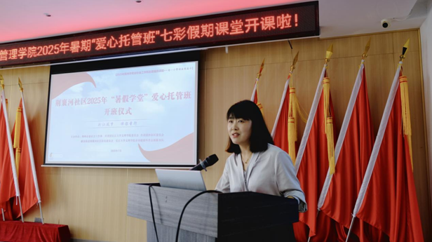 为确保暑期课堂顺利开课,7月14日上午8:30,荆襄河社区与管理学院携手,在荆襄河社区居民委员会举行了隆重的开班仪式。管理学院党总支书记胡沿林、副书记杨琪,带队老师李晗明、李平,荆襄河社区书记杨雪娇、副书记刘璐,以及“暑期课堂”学员、家长等80余人共同参与。