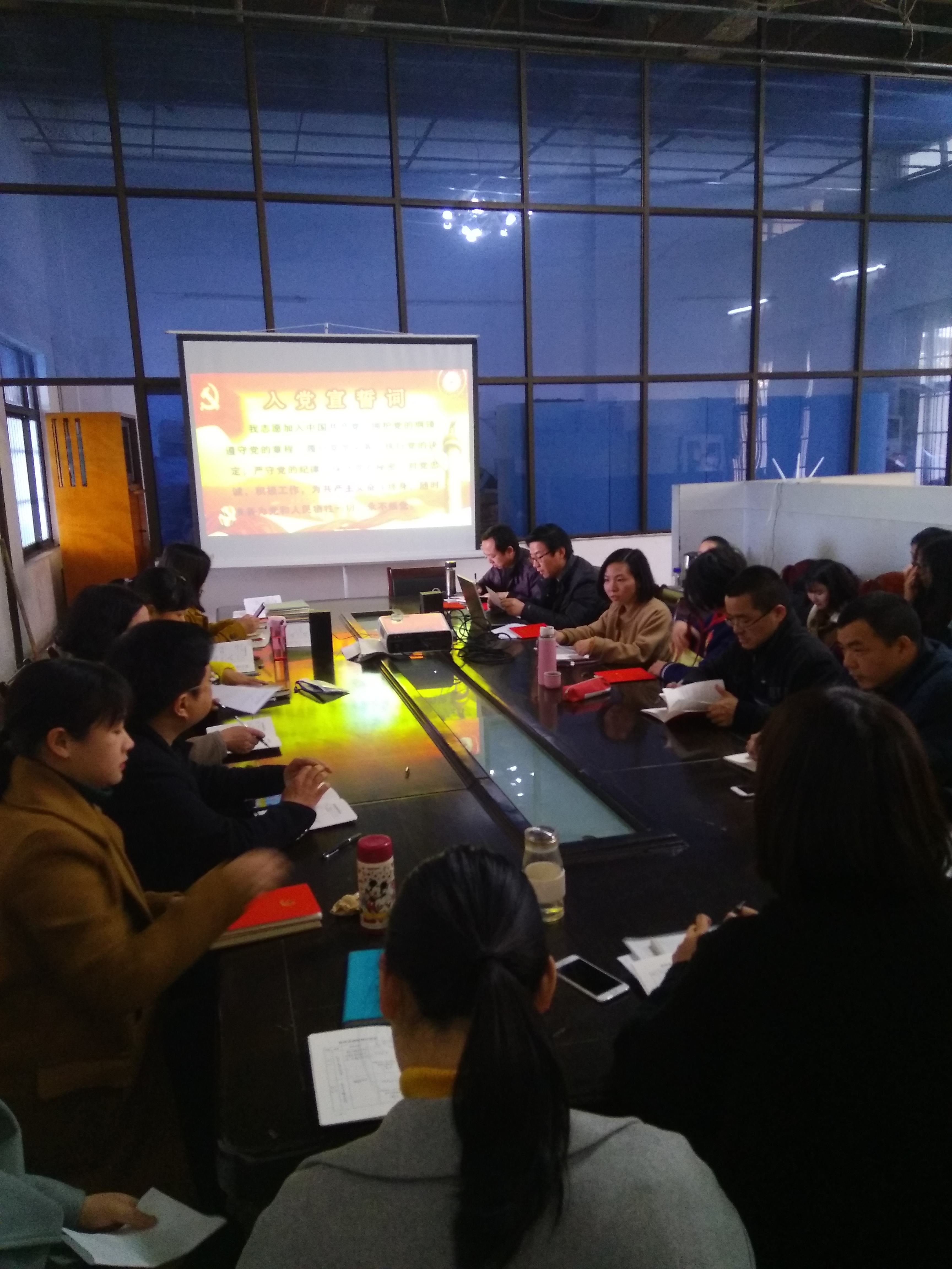 3月22日下午,工商管理系教工支部主题党日活动现场,全体党员庄严宣誓重温入党誓词,交纳党费、诵读新党章《总纲》,重点学习了《中国共产党第十九届中央委员会第三次全体会议公报》、2018年全国“两会”精神、《中共中央 国务院关于全面深化新时代教师队伍建设改革的意见》、yl7703永利集团三届四次教代会《学校工作报告》。