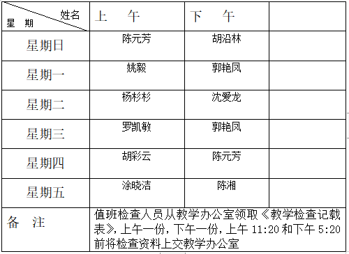 2、学生课堂情况检查:主要查看老师和学生到课情况,学生末到课的原因记载。