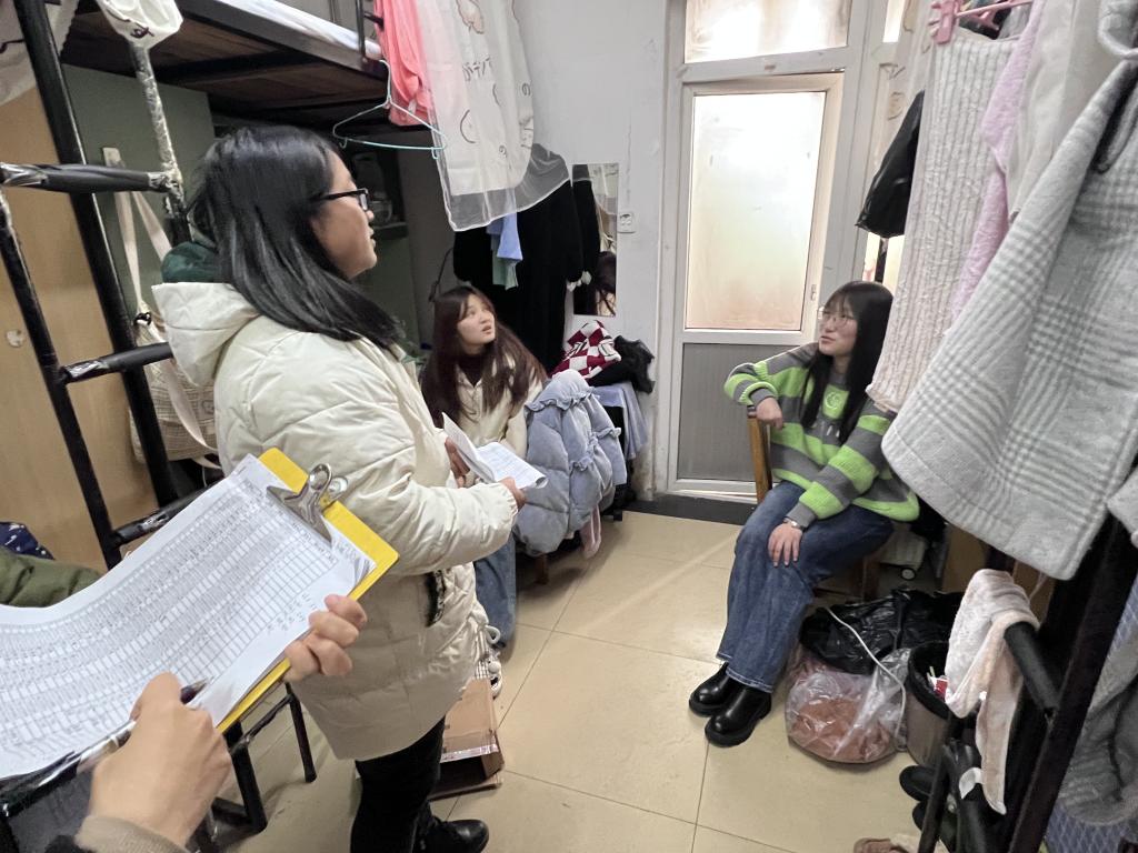 为了进一步加管理学院学生宿舍规范管理,确保广大同学的身体健康和生命安全,营造良好的学习生活氛围,2月14日下午,管理学院党总支副书记杨琪和全体辅导员老师对学生宿舍进行了安全卫生检查。