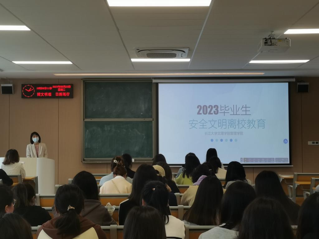 本报讯(通讯员孙晗雪)2023年5月17日,管理学院针对在校毕业生开展了诚信品质,积极履行还贷义务以及安全文明离校的主题班会。大会由毕业班辅导员主持,我院党总支书记胡沿林出席,2019级全体毕业生参加。
