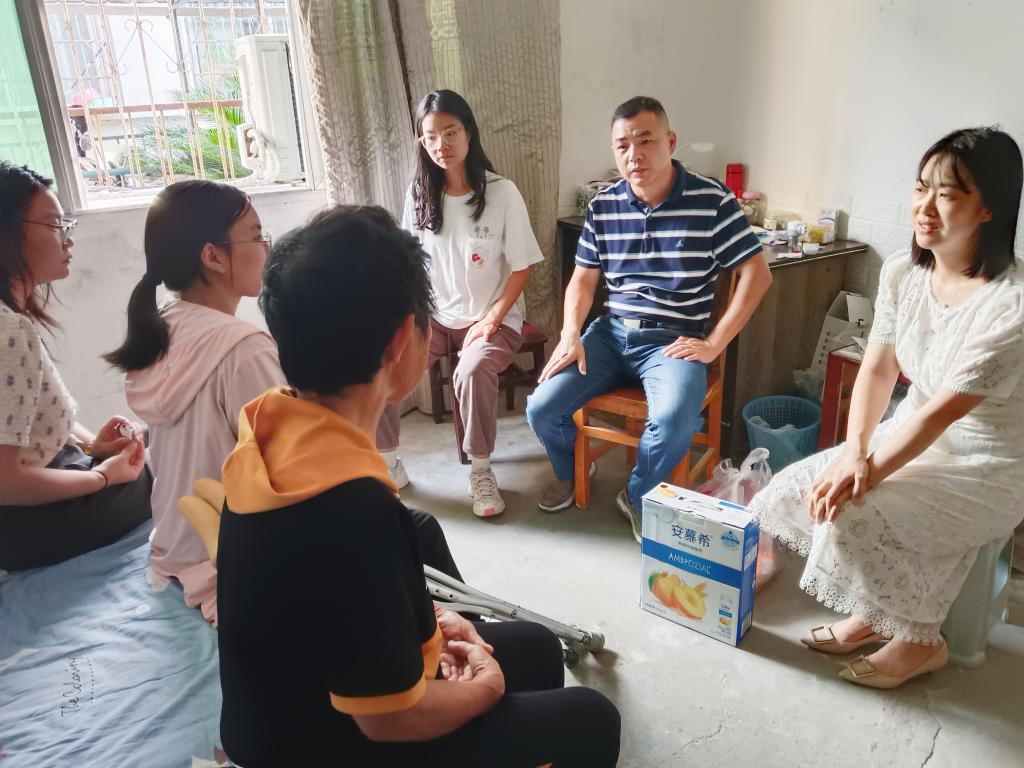 本网讯(通讯员孙晗雪)2023年9月7日下午15点30分,管理学院党总支书记胡沿林、常务副院长姚毅、党总支副书记杨琪、新生班辅导员以及班委,一起来到残疾学生家中,看望并关心她的学习生活情况。