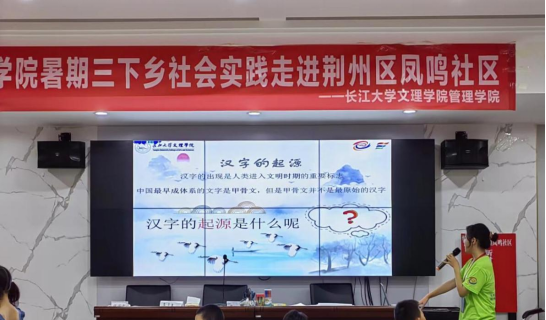 2023年7月18日,yl7703永利集团管理学院在荆州区凤鸣社区青少年之家举办了“探索楚韵荆州,展现出彩自我”主题活动。通过PPT授课为主,和游戏互动和才艺展示相辅相成。