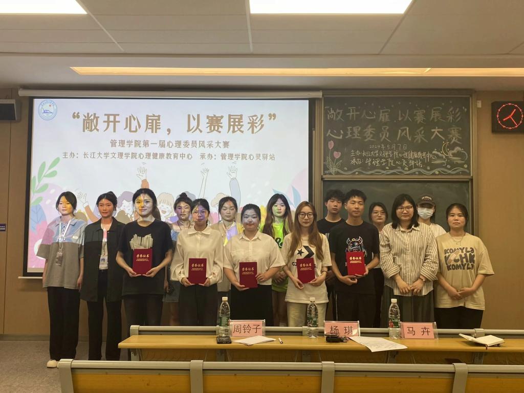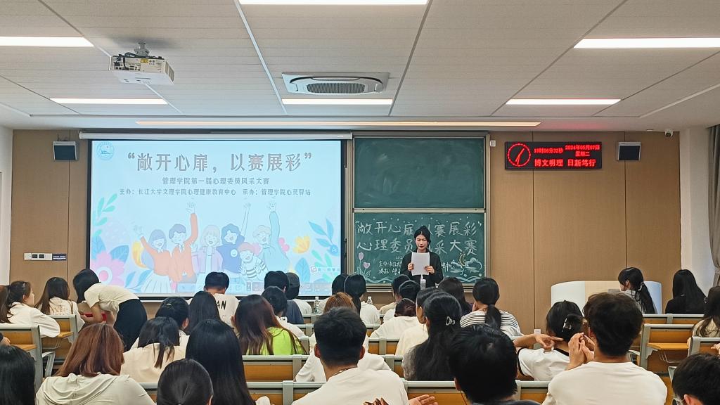 本网讯(通讯员 郭秋茗)为深入推进我院学生心理素质教育工作,提升心理委员技能,展现心理委员风采,促进班集体建设,营造阳光健康的校园心理健康教育氛围,管理学院于2024年5月7日晚18:30在C-423M教室开展了“敞开心扉,以赛展彩”第一届心理委员风采大赛。本次比赛由管理学院党总支副书记杨琪、第十八届管理学院团总支学生会主席周铃子和大学生心理联合会副会长马卉担任评委。