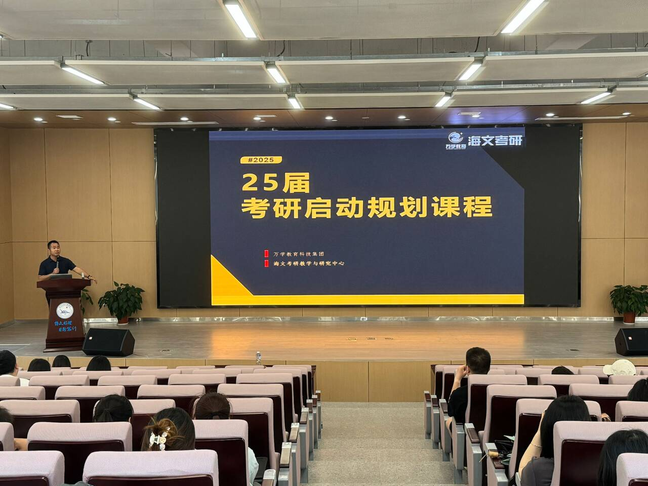 本网讯(通讯员 周金金)随着考研竞争的日益激烈,越来越多的大学生选择参加考研以提升自己的学术水平和就业竞争力。为帮助2025届考研学生更好地了解考研的相关信息,明确考研的目标和方向,增强考研的信心和动力,我院于4月24日在B-112报告厅举办2025届考研动员大会,管理学院副院长杨璐、辅导员孙晗雪、刘鹏,以及2025届部分毕业生参加。会议由管理学院党总支副书记杨琪主持,特邀请海文考研湖北分校副校长杨剑锋主讲。